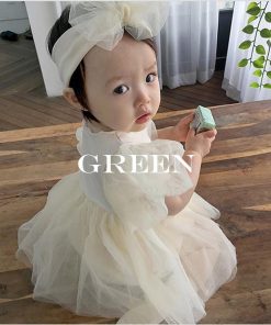 ベビー ワンピース ドレス ロンパース 女の子 セレモニードレス チュール ヘアバンド ベビードレス ハーフ バースデー 衣装 結婚式 1歳 誕生日 100日 お宮参り