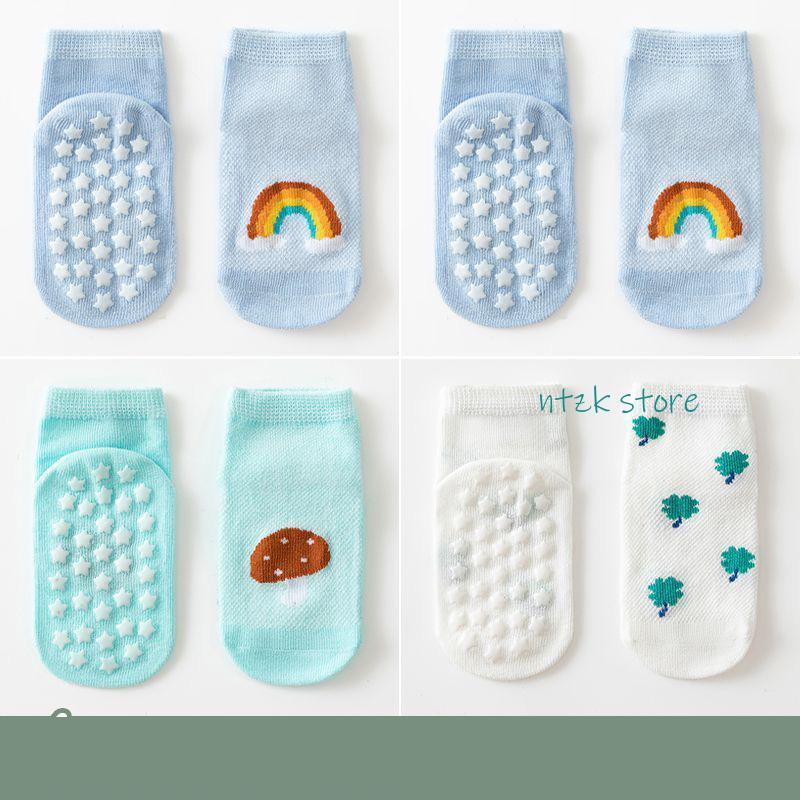 ベビー 靴下 4足セット メッシュ ショートソックス 夏 キッズ 滑り止め 蒸れない ソックス 新生児 男の子 赤ちゃん 女の子 歩き練習