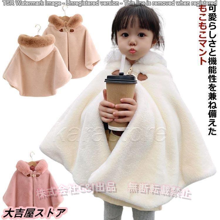 ポンチョ 子ども キッズ もこもこ 防風 防寒 あったか 子どもマント アウター 子供ポンチョ 可愛い (株)C&J子供 コート ケープ 七五三 子供用 フード付
