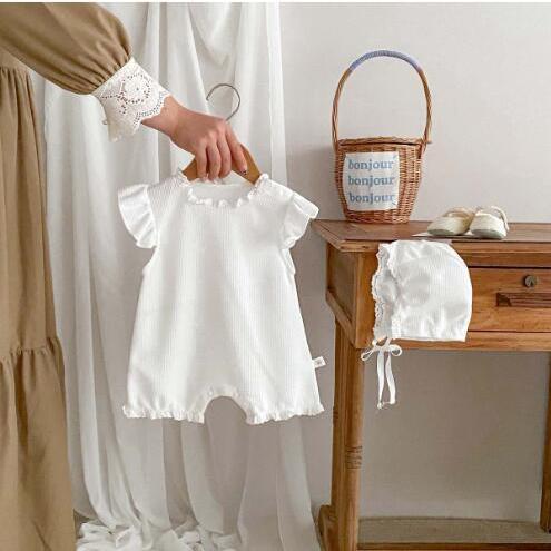 ロンパース ワッフルロンパース ベビー 帽子 ボンネット 赤ちゃん 新生児 ベビー服 子供服 セレモニードレス 退院 お宮参り カバーオール 女の子