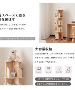 回転式本棚 4段 回転盤-マルチ高さ 天然木 飾り棚 絵本棚 360°回転本棚 組立簡単 本棚 大容量 回転ラック 省スペース 収納ラック4段